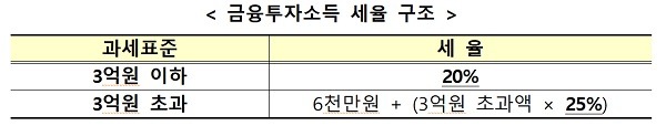 먼저 2023년 부터 대주주에 국한된 양도세 부과 대상을 개인 투자자로 넓히기로 했다. 양도세는 대주주와 개인투자자 구분없이 주식 양도소득이 3억원 이하이면 20%, 3억원 초과는 6000만원+ 3억원 초과액의 25% 등 2단계 세율로 과세된다.