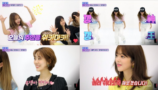 신곡 ‘OOPSY’(웁시)의 무대로 방송을 시작한 위키미키는 ‘퍼포먼스 퀸’다운 칼군무로 시선을 사로잡았다. 이후 본격적인 게임에 앞서 진행된 ‘입덕짤 업데이트’ 코너에선 최유정이 비의 ‘깡’ 커버 댄스를 완벽하게 선보여 스튜디오를 뜨겁게 달궜다.