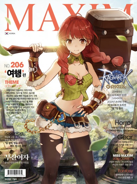 ‘여행’을 테마로 한 맥심 7월호는 코로나19로 여름 여행과 로맨스가 좌절된 현대인을 위해 게임 속 환상의 세계를 여행하자는 의미에서 라그나로크 오리진에 등장하는 게임 캐릭터로 표지를 꾸몄다.