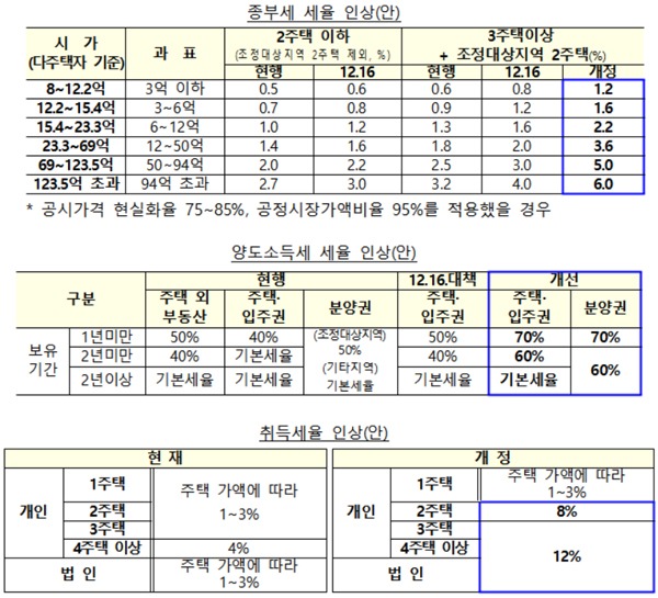 이에 따라 다주택자에 대한 종합부동산세, 양도소득세, 취득세를 한꺼번에 인상한다.