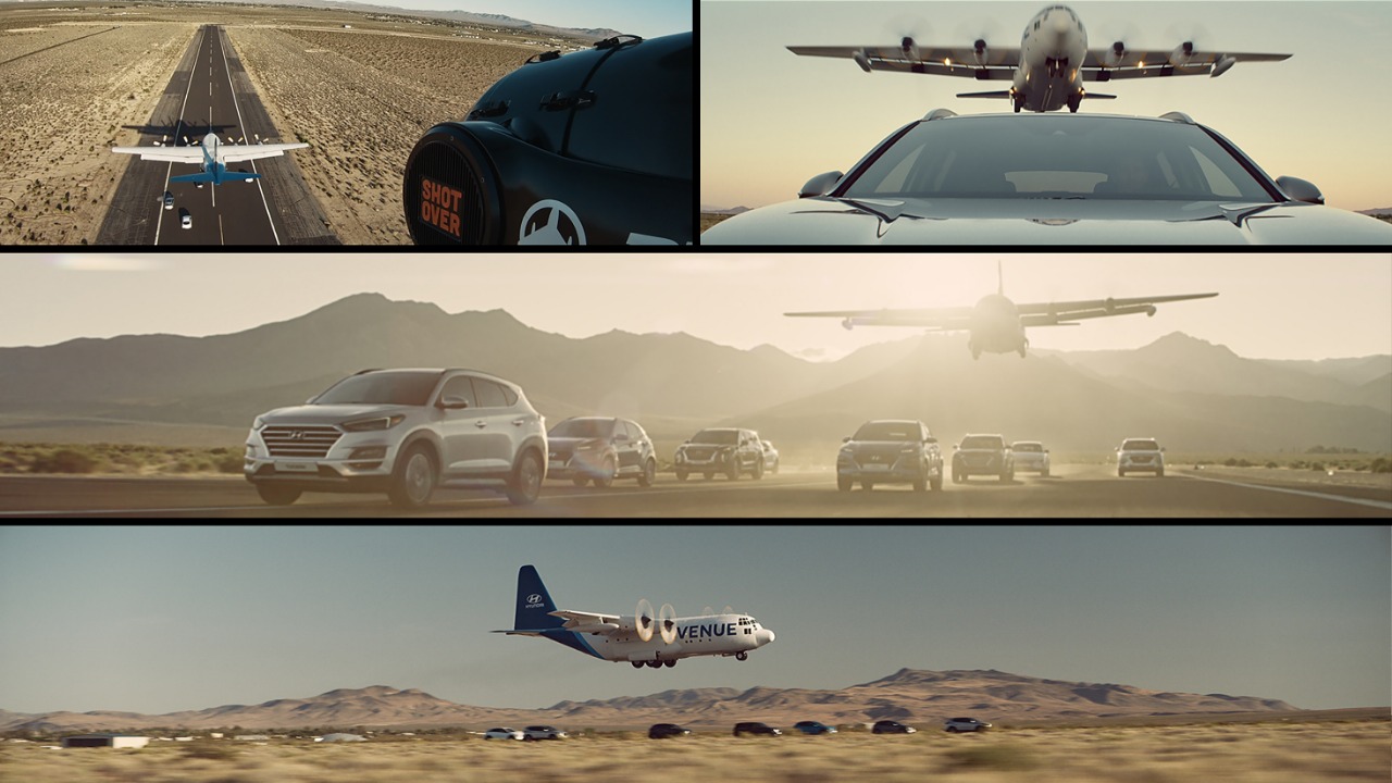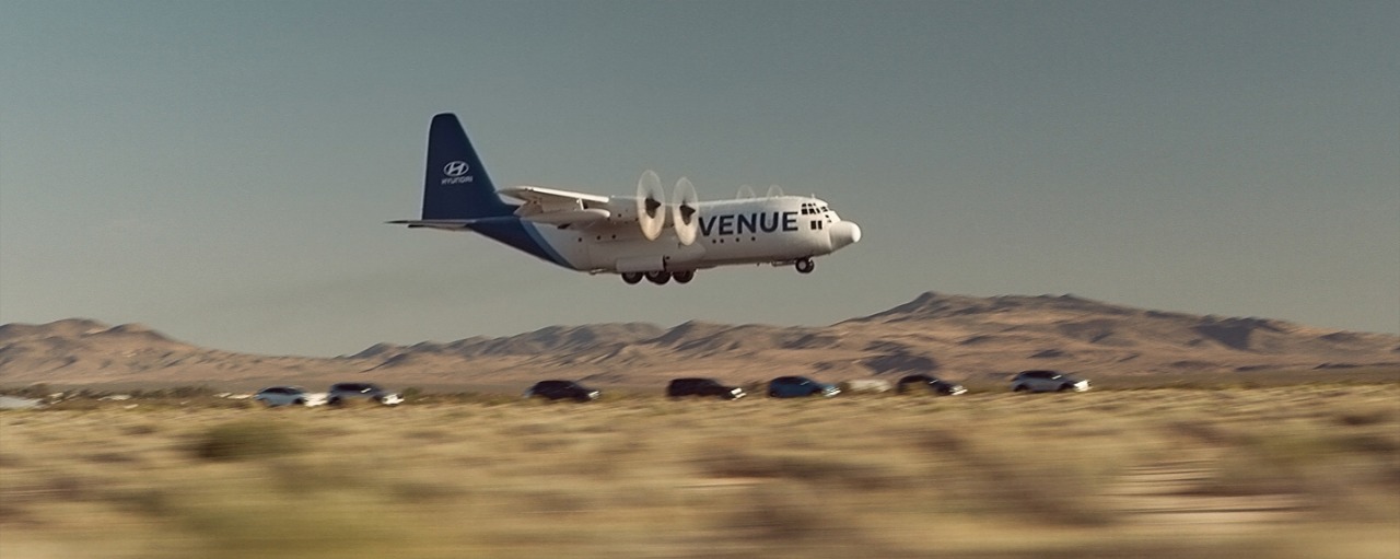 고공 비행 중이던 ‘베뉴 수송기’가 착륙하려고 하자 팰리세이드와 넥쏘, 싼타페, 투싼, 코나 등 현대자동차 SUV 모델들이 베뉴를 맞이하기 위해 공항 활주로로 하나 둘씩 모여들고, ‘베뉴 수송기’는 그 바로 위를 압도하면서 저공 비행한다.