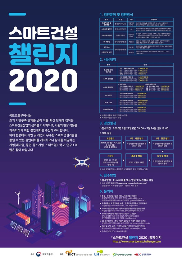 입상자는 국토교통부장관상, 한국건설기술연구원장상이 수여되며, 11월「2020 스마트 건설기술·안전대전」에서 시상할 계획이다.