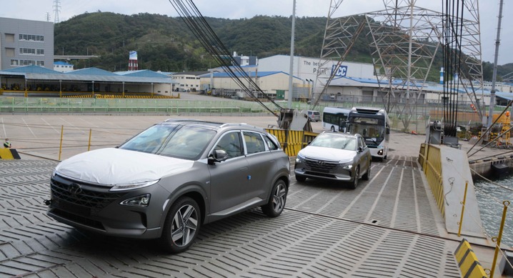 현대자동차는 27일(일) 울산항에서 수소전기차 ‘넥쏘’ 2대, 수소전기버스 ‘일렉시티 FCEV’ 2대 등 총 4대를 선적해 사우디 아라비아로 수출했다고 밝혔다.