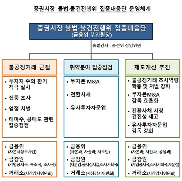 금융위는 이같은 문제점에 선제적으로 대응하기 위해 금융위·금감원·거래소가 참여하는 ‘집중대응단’을 조직하고 ‘불법·불건전행위 근절 종합대책’을 추진하겠다”고 밝혔다.