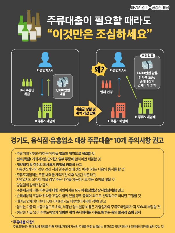 주류대출 시 불공정 계약으로 인한 소상공인 피해가 없도록 주의해야