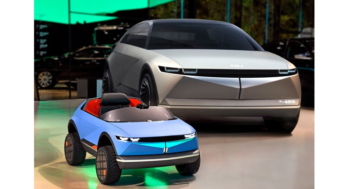 현대자동차그룹이 EV 콘셉트카 『45』 디자인을 활용해 제작한 어린이 전동차의 이미지와 제작 과정 영상을 27일(화) 최초로 공개했다.