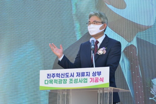 경남 진주시와 한국토지주택공사(LH)는 지난 8일 진주시 충무공동 291-1 저류지에서 '진주혁신도시 저류지 상부 다목적 광장 조성사업'기공식을 개최했다.