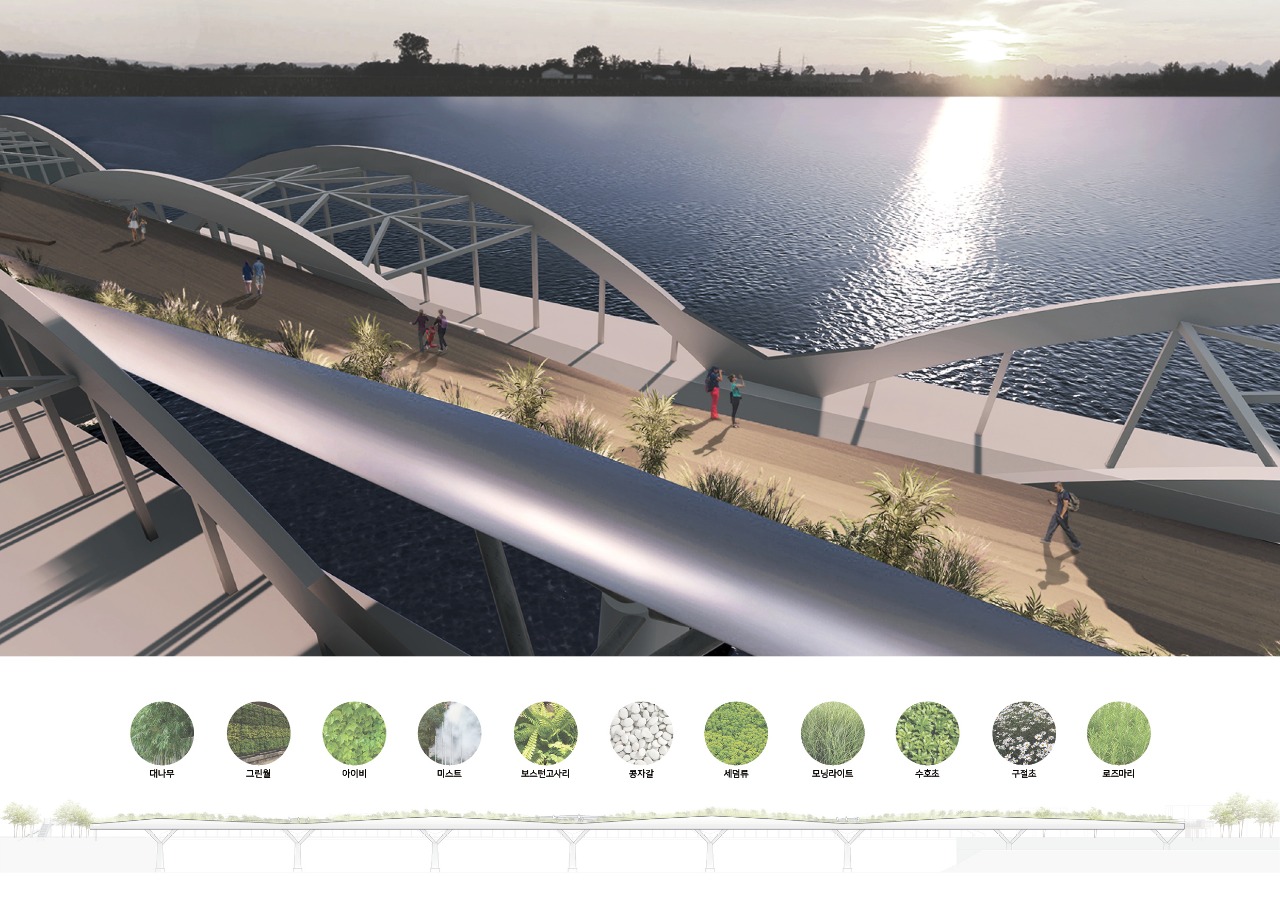 보행교가 기존 아치교 사이에 조성되는 만큼, 아치가 보이는 구간은 식재 등을 통해 가리고, 아치 아랫부분의 시야가 열리는 구간은 테라스 등을 통해 경계 없이 한강의 경관을 감상할 수 있도록 조성할 예정이다.
