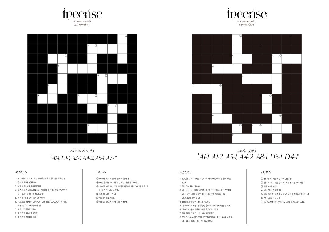 단어에 대한 힌트는 문빈&산하의 유닛 및 그룹 활동과 연관되어 있다. 아스트로 데뷔 월인 ‘2월’, 아스트로의 팬클럽명 ‘아로하’ 등 문빈&산하와 관련된 단어들을 조합해 어떤 글자들이 모여질지 관심이 모아진다. 이번 미니 3집의 앨범명과 맞물려 있는 ‘향’을 표현한 단어들도 팬들의 추리를 불러일으켰다.