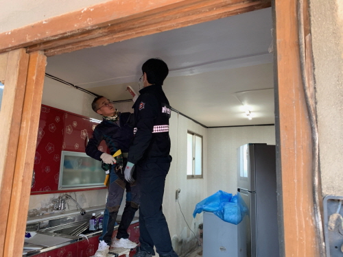 이날 복지대원들은 최근 동파로 인해 수도관이 터져 장판과 벽지가 뜨고 집안 곳곳에 곰팡이가 피어 주거환경이 열악한 독거노인 가구를 위해 도배와 장판을 교체하고 집안에 방치된 생활 쓰레기와 폐기물을 함께 처리했다.