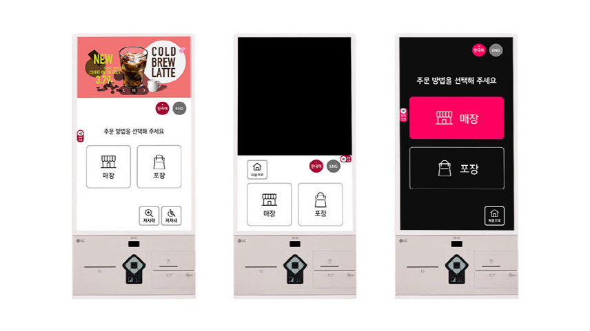 LG 키오스크는 무인솔루션 전문업체 한국전자금융과 한국향 전용 UX를 개발해 ▲보다 큰 글씨와 선명한 화면을 보여주는 ‘저시력자 모드’ ▲휠체어를 이용하거나 신장이 작은 고객들이 편리하게 이용할 수 있도록 주요 메뉴를 화면 아래쪽에 배치한 ‘저자세 모드’를 제공한다.