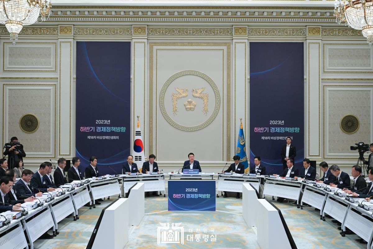 이날 회의는 기획재정부 등 18개 부처 장·차관, 국민경제자문회의와 과학기술자문회의 부의장 및 자문위원 등이 참석해 윤석열 정부 출범 이후 1년여 간의 경제정책 추진 성과를 점검하고, 올 하반기 이후 경제정책방향을 논의했다.