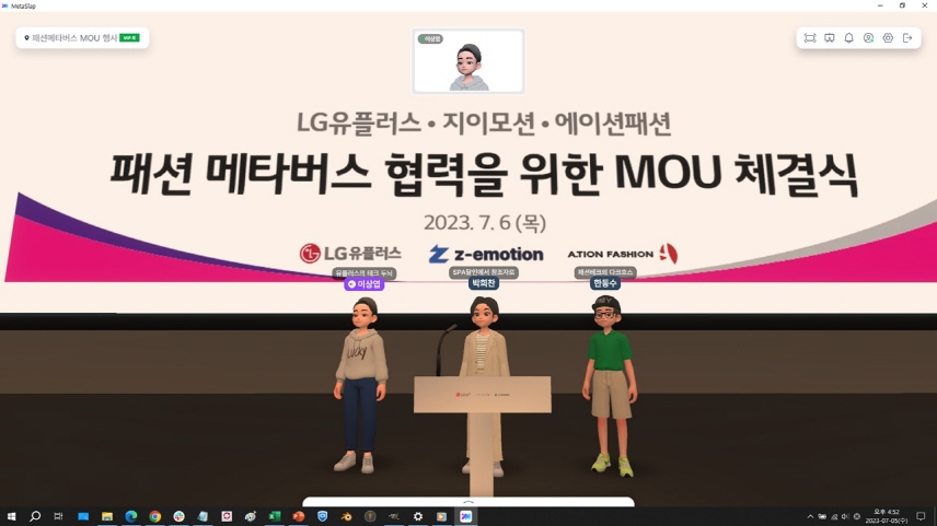 LG유플러스는 패션 기업 ‘에이션패션 ’, 패션테크 전문기업 ‘지이모션’과 패션 메타버스 사업 협력을 위한 양해각서를 체결하고 패션 메타버스 시장에 진출한다고 9일 밝혔다.