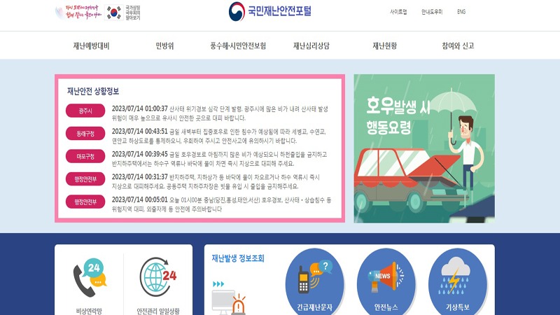 이에 기상상황을 가장 먼저 파악할 수 있는 기상청이 지난 6월부터 극한 호우가 발생할 경우 읍·면·동 단위로 위험지역에 위치한 주민에게 재난문자를 직접 발송하기로 했다.