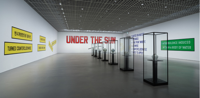 이번 전시에선 ‘UNDER THE SUN(1999/2000)’와 ‘A BIT OF MATTER AND A LITTLE BIT MORE(1976)’를 포함한 언어 조각 대표작 47점을 선보일 예정이다. 특별히 이번에는 다양한 문화적 요소에 관심이 많았던 작가의 철학을 반영해 아모레퍼시픽미술관 고미술 소장품을 함께 전시해 눈길을 끈다. '주체와 대상', '과정', '동시적 현실'이라는 3가지 주제 아래 펼쳐지는 언어 조각과 고미술품의 어울림을 통해 동서고금의 아름다움을 한자리에서 체험할 수 있다.