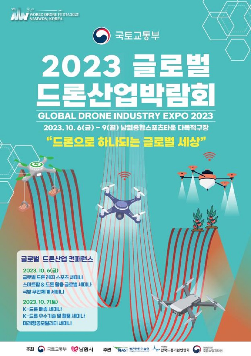 국토교통부와 항공안전기술원은 오는 6일부터 9일까지 4일 동안 남원종합스포츠타운에서 ‘2023 글로벌 드론산업 박람회 & 콘퍼런스’를 개최한다고 4일 밝혔다.