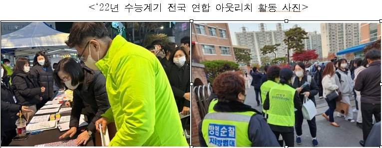 여성가족부는 16일 대학수학능력시험을 계기로 이날부터 오는 22일까지 청소년의 가출을 예방하고 가정 밖 청소년을 보호하기 위한 전국 연합 ‘찾아가는 거리상담(아웃리치)’을 실시한다고 밝혔다.