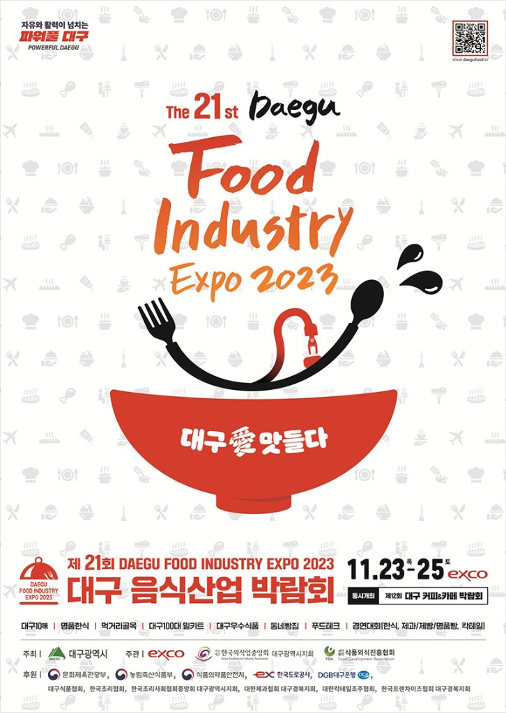정의관 대구광역시 보건복지국장은 “군위 편입과 신공항 건설로 대구음식산업은 국내관광 브랜드화를 넘어 K-Food 관광으로 영역이 확대될 것이며, 국제적 음식산업 도시로 도약을 위해 대구음식산업박람회와 대구커피&카페 박람회가 축제와 비즈니스의 장이 되길 기대한다”고 말했다.