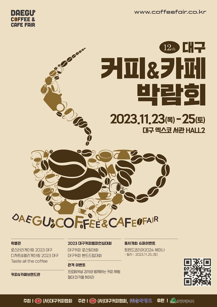 동시 개최되는 제12회 대구 커피&카페 박람회는 대구의 우수한 커피와 카페 산업 인프라를 홍보하고, 업체의 마케팅 및 판로개척 지원을 통해 지역 커피 및 식음료 산업 활성화를 도모한다.