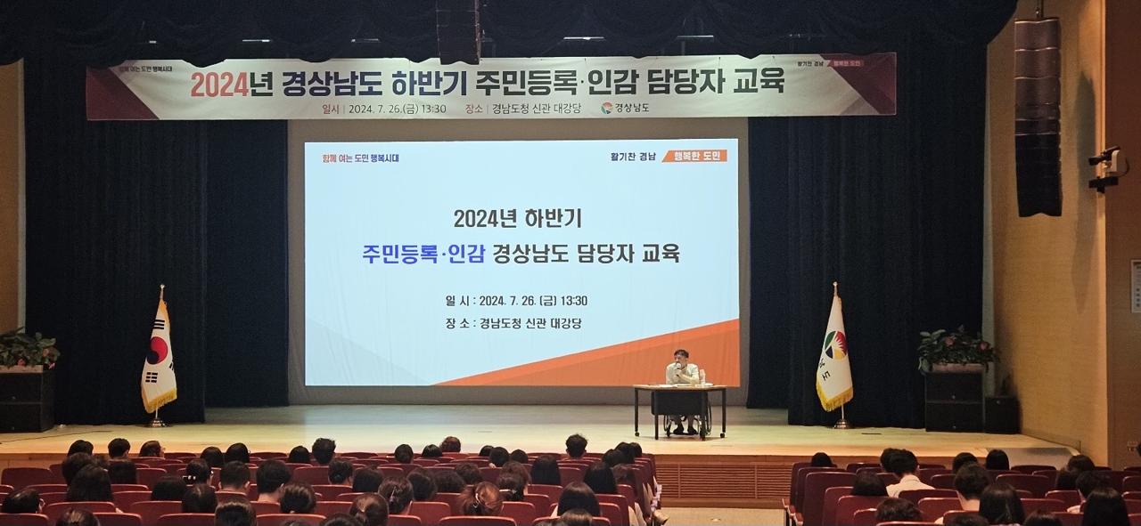 경상남도는 26일 도청 대강당에서 도내 18개 시군 주민등록 업무담당자 300여 명을 대상으로 주민등록·인감 사무와 주민등록법 개정 사항에 관한 교육을 진행했다고 밝혔다.