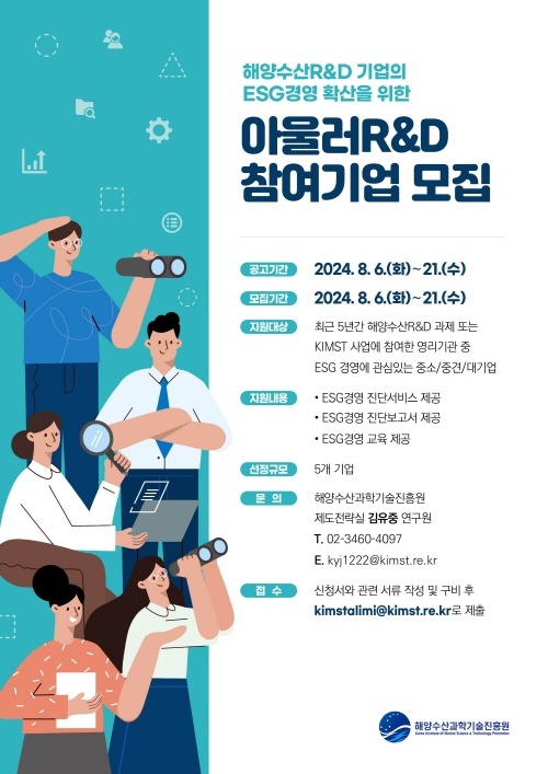 이에 해양수산연구개발 전문기관인 KIMST는 해양수산R&D 기업 뿐만 아니라 창업투자 사업 등에도 참여한 기업이 아울러R&D에 참여할 수 있도록 지원 대상을 확대할 예정이다