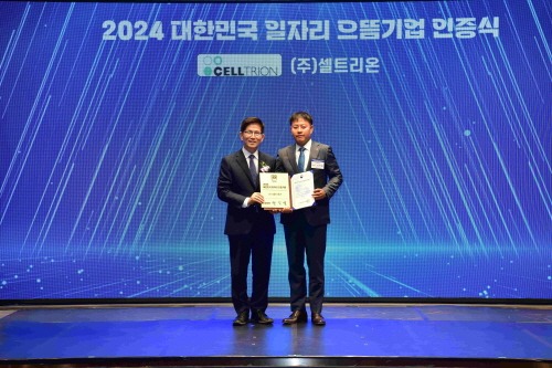 셀트리온, ‘2024 대한민국 일자리 으뜸기업’에 선정, 고용노동부, 양질의 일자리 창출 대표기업 인증