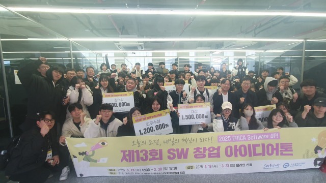 한양대학교 ERICA 소프트웨어 중심대학 사업단(이하 SW 중심대학사업단)은 ‘2025 ERICA Software-Up! 제13회 SW 창업 아이디어톤’을 3월 29일(토)부터 30일(일)까지 무박 2일 동안 한양대학교 ERICA 캠퍼스 내 학연산 클러스트에서 성공적으로 개최했다고 밝혔다.
