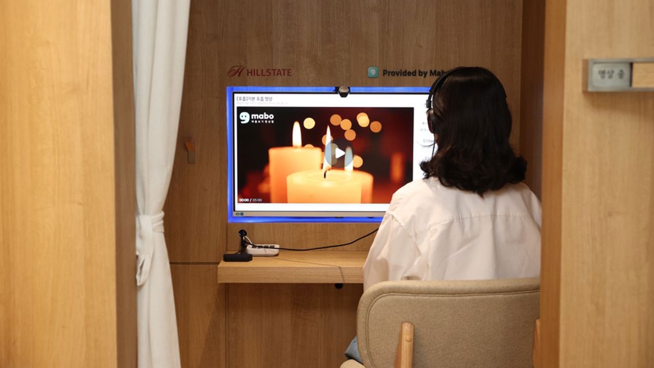 이 공간은 심리적 몰입을 돕는 차분한 색채의 인테리어 자재, 낮은 조도의 조명, 차음 구조를 적용해 심리 안정 효과를 극대화했다. 또한 국내 대표 명상 플랫폼 ‘마보(「마음보기」 줄임말)’와 협업해 명상 초보자도 쉽게 활용할 수 있도록 영상 기반 명상 콘텐츠를 제공하며, 사용자는 부스 내에서 마음챙김, 호흡법, 수면습관 등 다양한 프로그램을 선택해 이용할 수 있다.