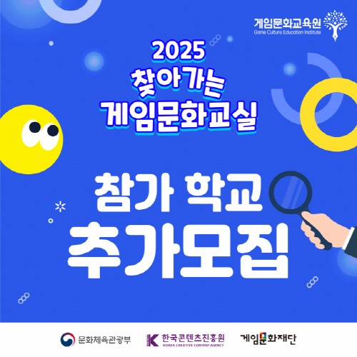 게임문화재단(이사장 유병한, 이하 재단)은 문화체육관광부(장관 유인촌)와 한국콘텐츠진흥원(원장직무대행 유현석)과 함께 오는 7월 31일까지 ‘2025 찾아가는 게임문화교실’ 참가 학교를 추가 모집한다고 밝혔다.