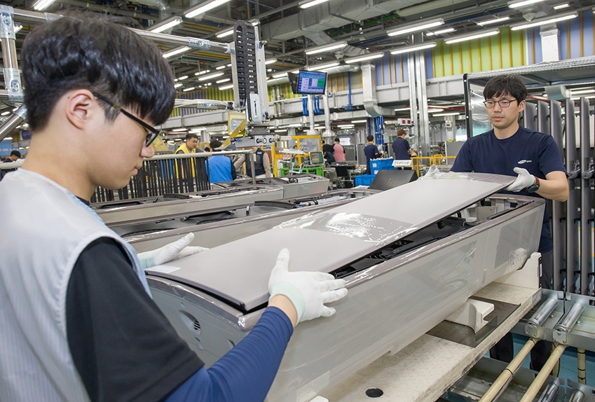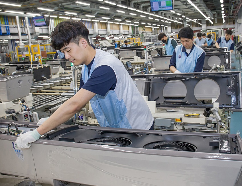 광주광역시 광산구 하남산단 6번로에 위치한 삼성전자 광주사업장에서 직원들이 '무풍에어컨'을 생산하고 있다.