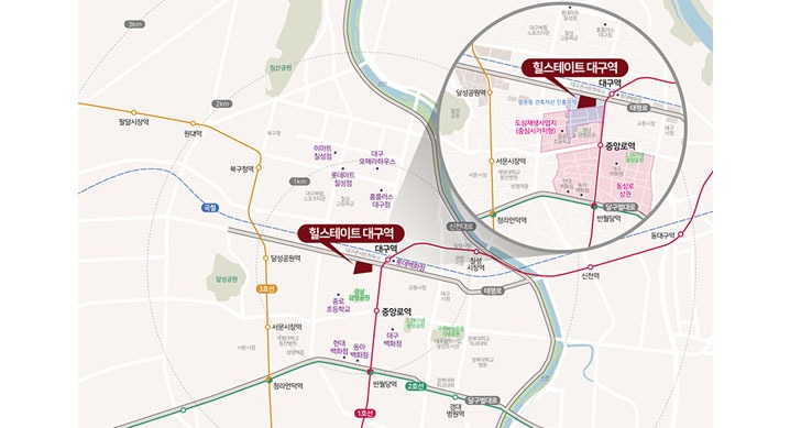힐스테이트 대구역은 대구 중구의 중심에 위치한 대구역과 가장 가까운 맨 앞자리에 위치해 있어 우수한 주거여건을 갖추고 있다.