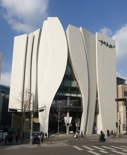 H-PULSE 하나멤버스 라운지가 위치한 H-PULSE는 수직적 곡선의 강렬하고 역동적인 파사드를 구현해 야간에는 화려한 미디어파사드 영상을 연출하며 하나금융그룹의 핵심가치를 육각형 모듈의 외장 디자인에 담아 그 의미를 더했다.