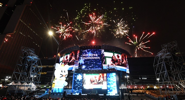 지난해 12월 31일 오후 9시부터 코엑스 야외 광장 앞 영동대로 일대(서울시 강남구)에서 진행된 '2020 영동대로 카운트다운'에는 행사장을 가득 메운 약 5만 명의 시민들이 열정적인 축제 분위기 속에서 새해를 기념했다.